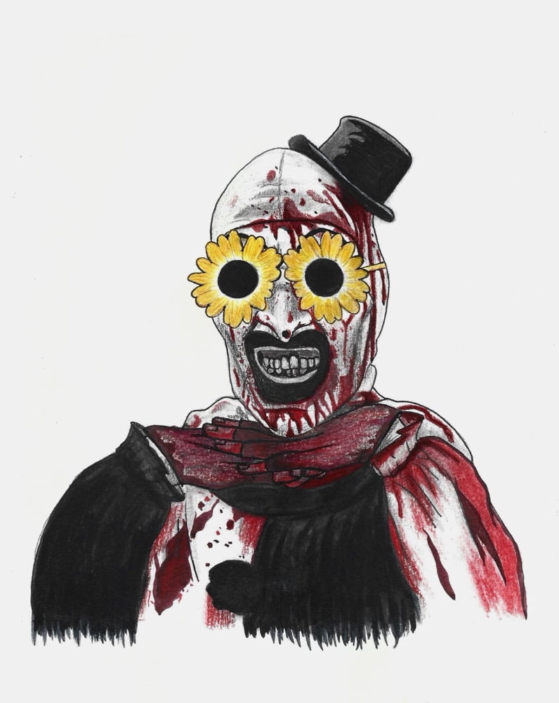 Gnarly Quinn art print of “TERRFIER” mixed media sketch. Printed in house.