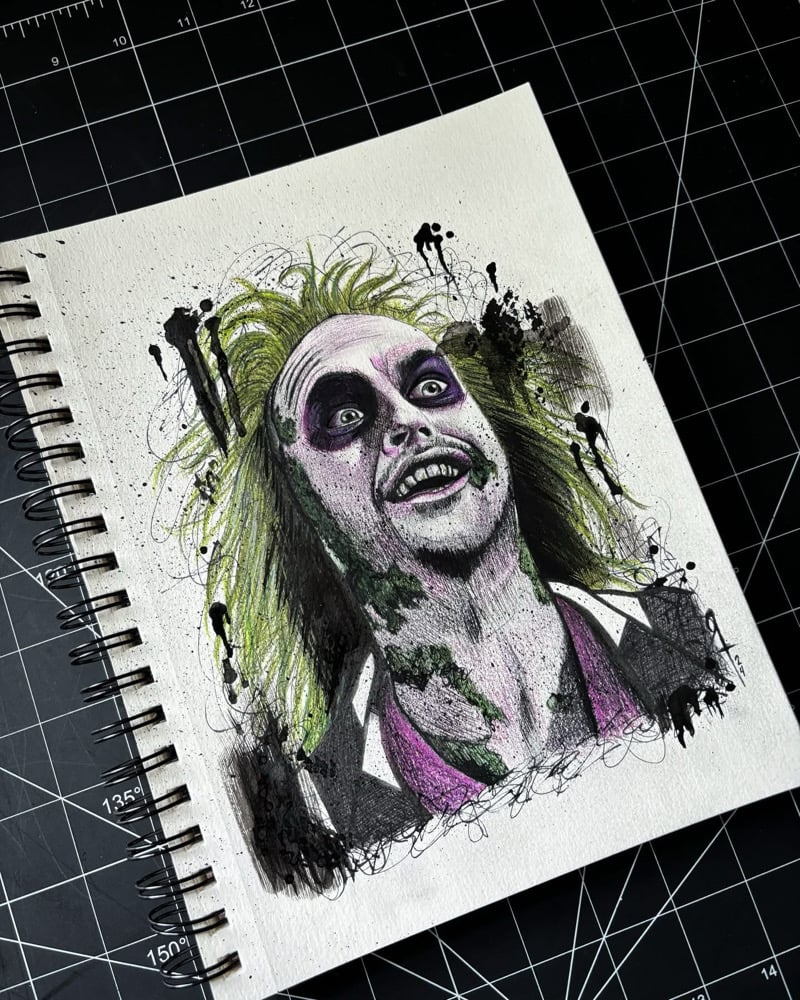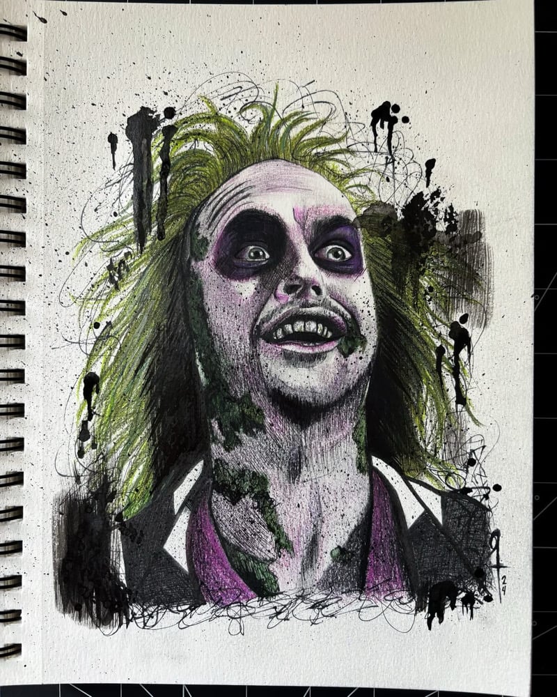 Gnarly Quinn art print of “BEETLEJUICE” sketch. Printed in house.