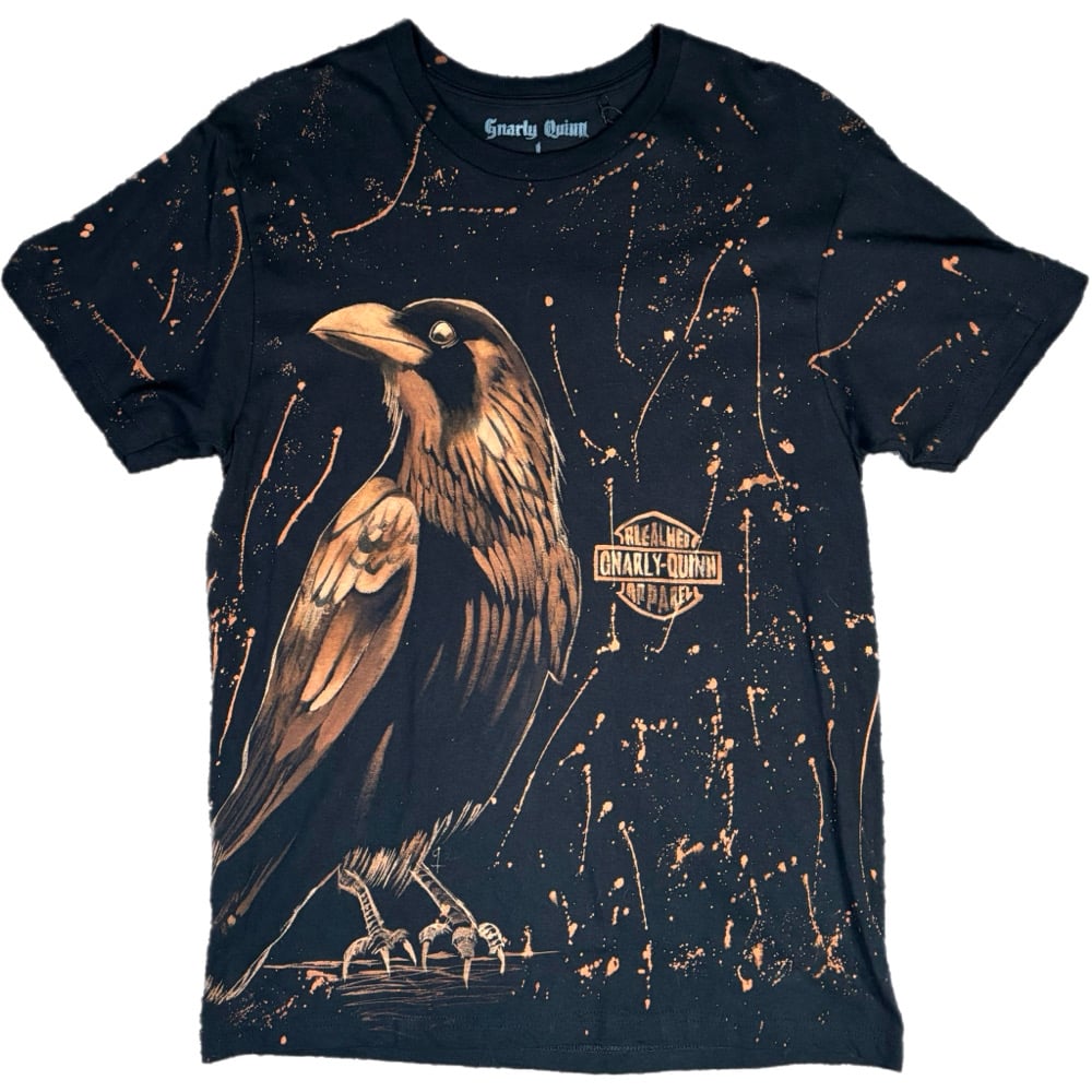 “GNARLY CROW” Custom Bleach Painted T-shirt LARGE