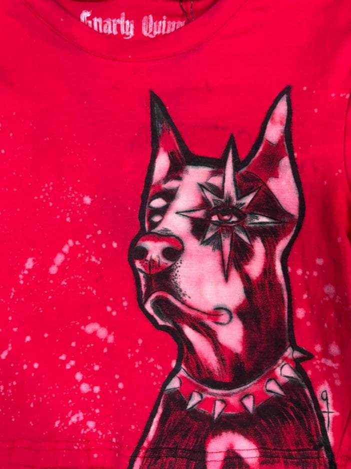 “LUCKY DOBERMAN” Custom Bleach Painted Baby Tee SMALL