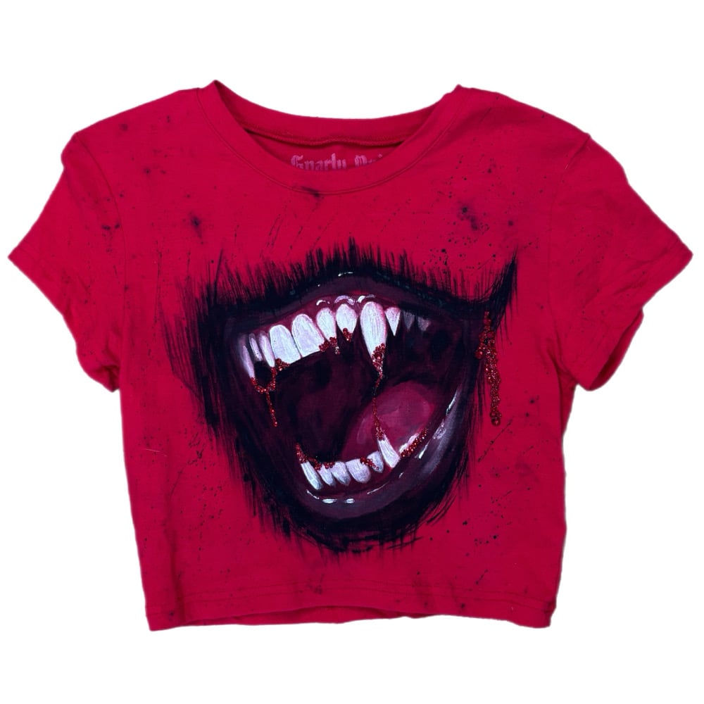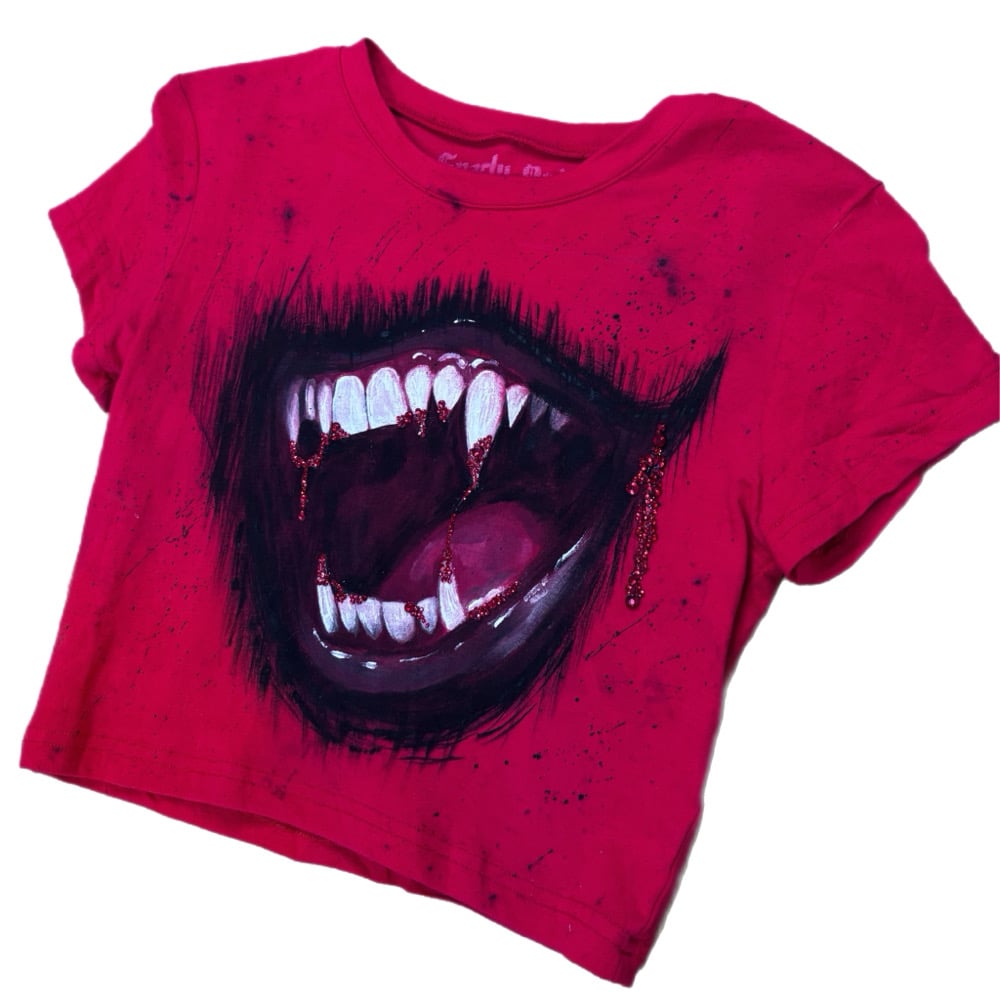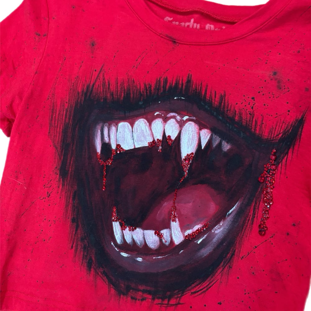 “VAMP TEETH” Custom Hand Painted Baby Tee SMALL